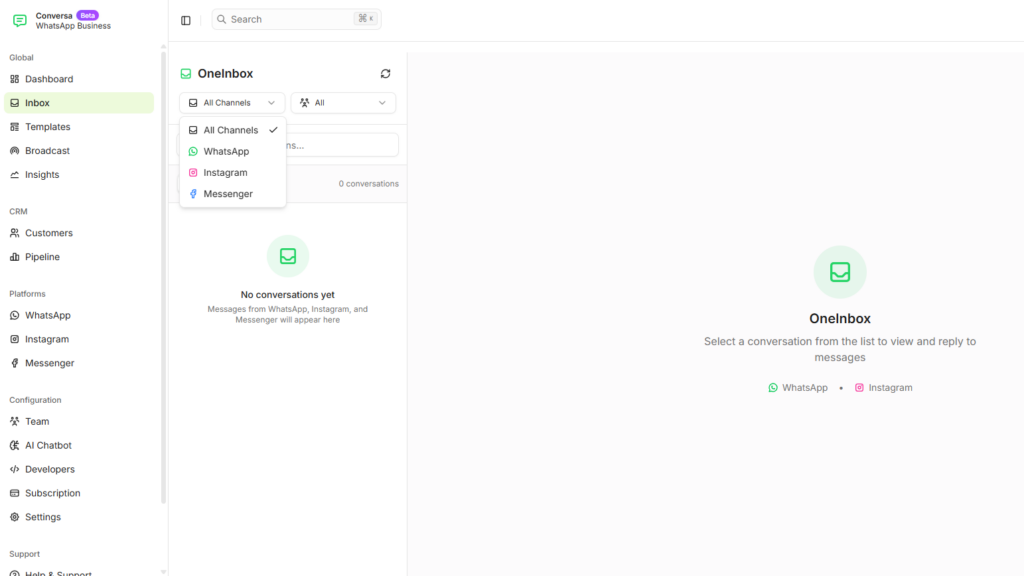 Conversa.id adalah platform omnichannel CRM yang menyatukan WhatsApp dan Instagram dalam satu dashboard.